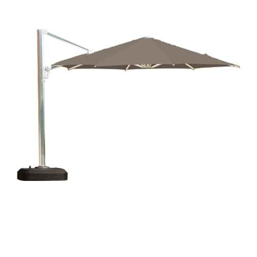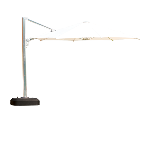 Echo parasol bases should be filled with water or sand and have adjustable wheels for ease of movement.